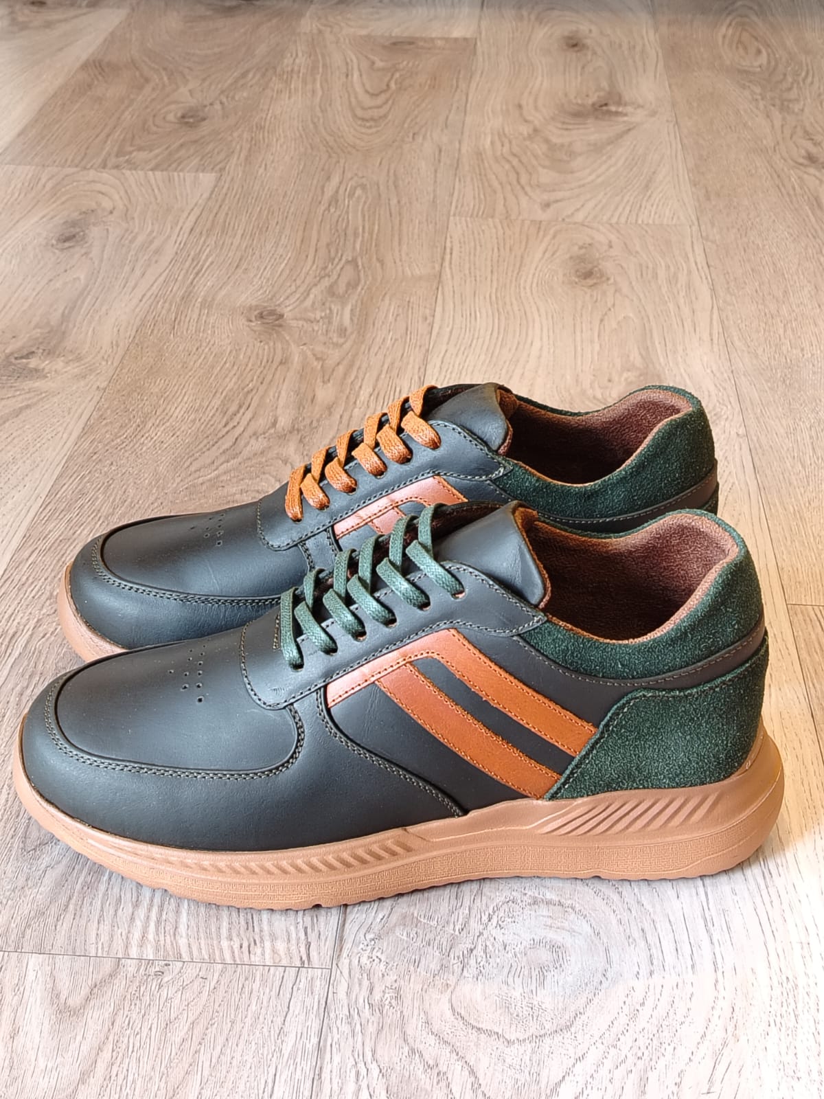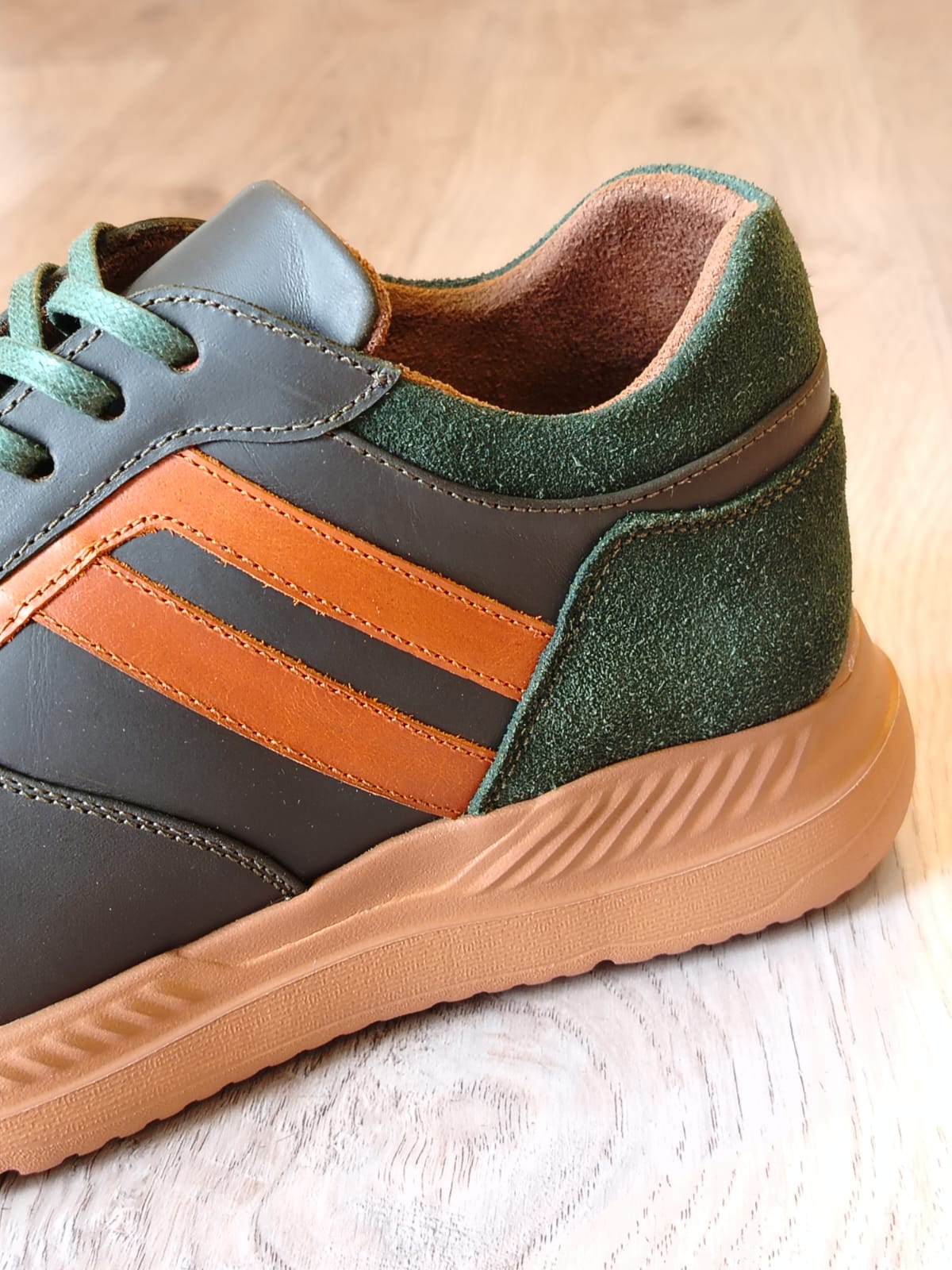 Teni en cuero x gamuza caballero verde x miel
